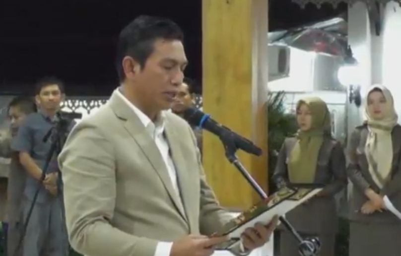 SIGAP91NEWS.COM | BATANG HARI – Pelantikan,pengukuhan dan pengambilan sumpah janji Jabatan Pimpinan Tinggi(JPT) pratama di lingkungan pemerintah Kabupaten Batang Hari Nomor :005/254/BKPSDMD terselenggara diserambi rumah dinas Bupati Batang Hari jumat malam(03/02/23)