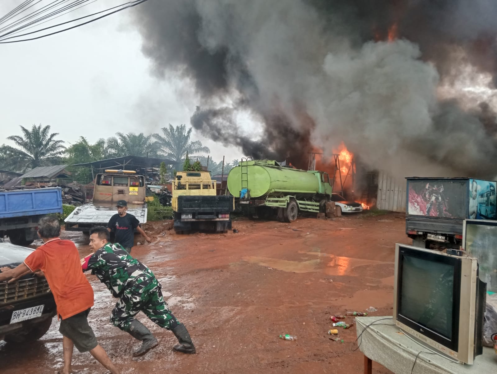 “Kobaran apinya besar sekali, asap hitam tebal banget, sampai mata perih dan napas sesak,” ungkap seorang warga yang rumahnya hanya berjarak puluhan meter dari lokasi kejadian.