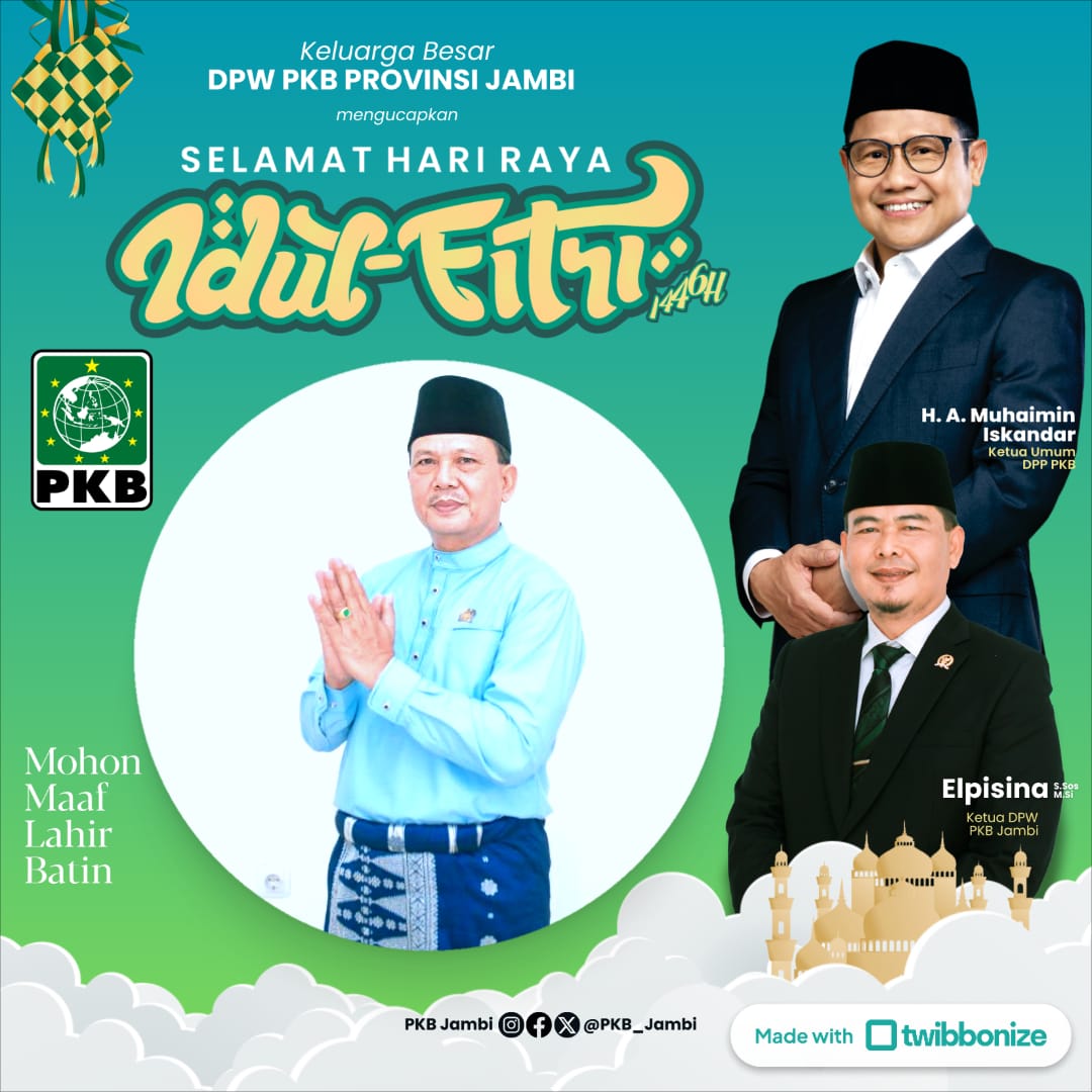 Jambi – Dalam suasana penuh haru dan sukacita, Keluarga Besar Dewan Pengurus Wilayah (DPW) Partai Kebangkitan Bangsa (PKB) Provinsi Jambi menyampaikan ucapan: