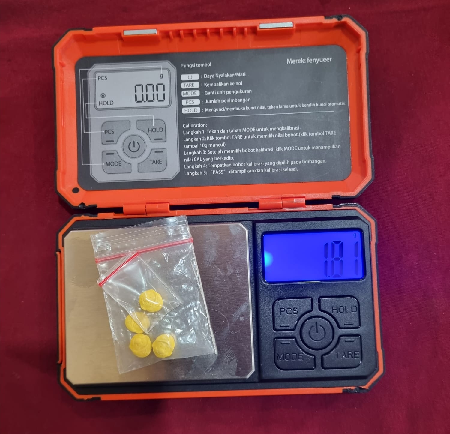 Dari hasil penggeledahan, ditemukan satu plastik klip berisi pil ekstasi berbentuk Super Mario warna kuning serta satu unit ponsel POCO M4 Pro yang diakui milik Ferdi. Ia mengaku mendapatkan narkotika tersebut dari Solontok (DPO).