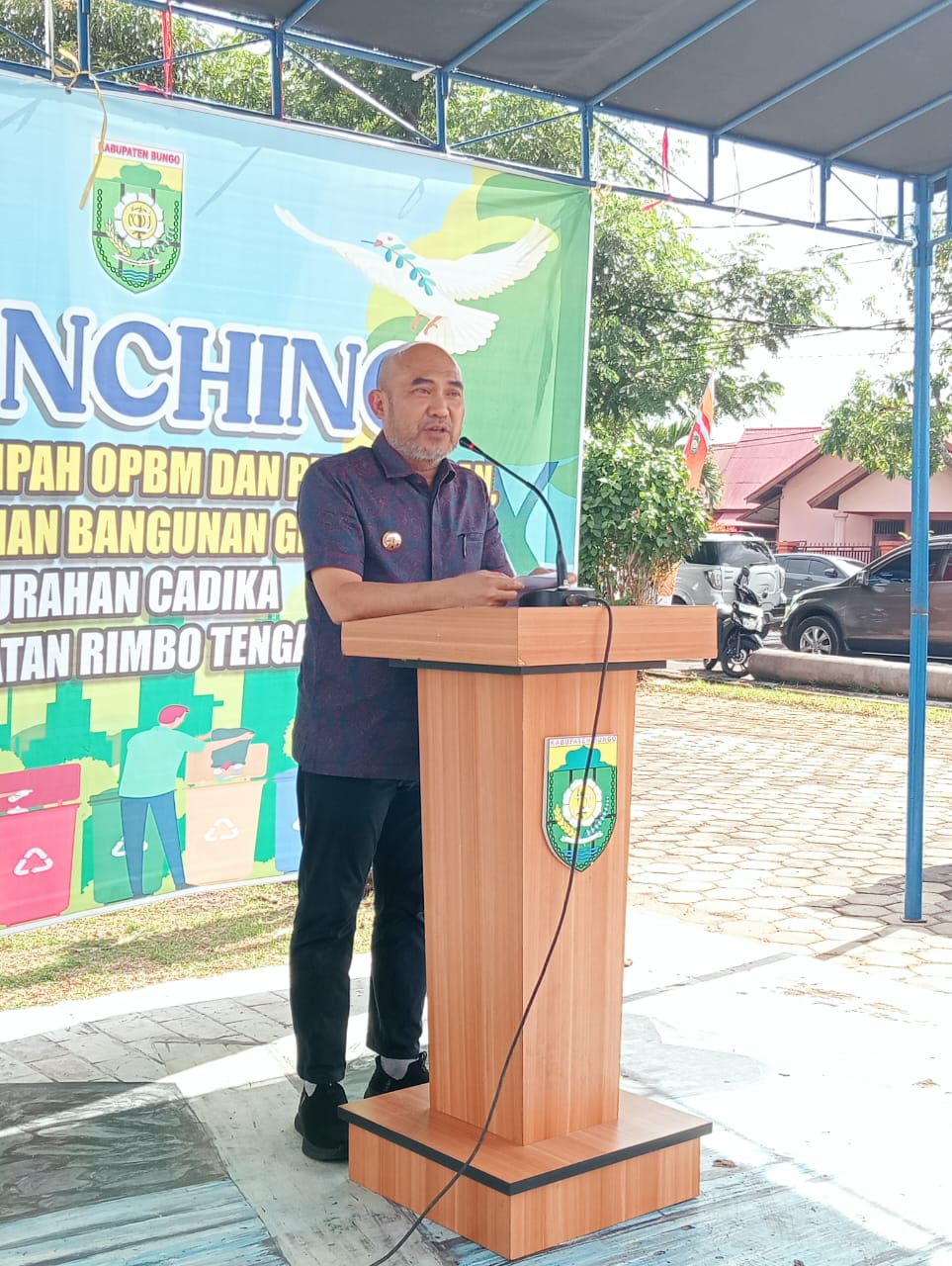 Sigap91News.com || Bungo – Bupati Bungo H. Dedy Putra secara resmi melaunching Pengelolaan Sampah berbasis OPBM serta Pengawasan dan Pengendalian Bangunan Gedung bagi seluruh RT dan RW se-Kelurahan Cadika, Kecamatan Rimbo Tengah, Kamis (23/10/2025).