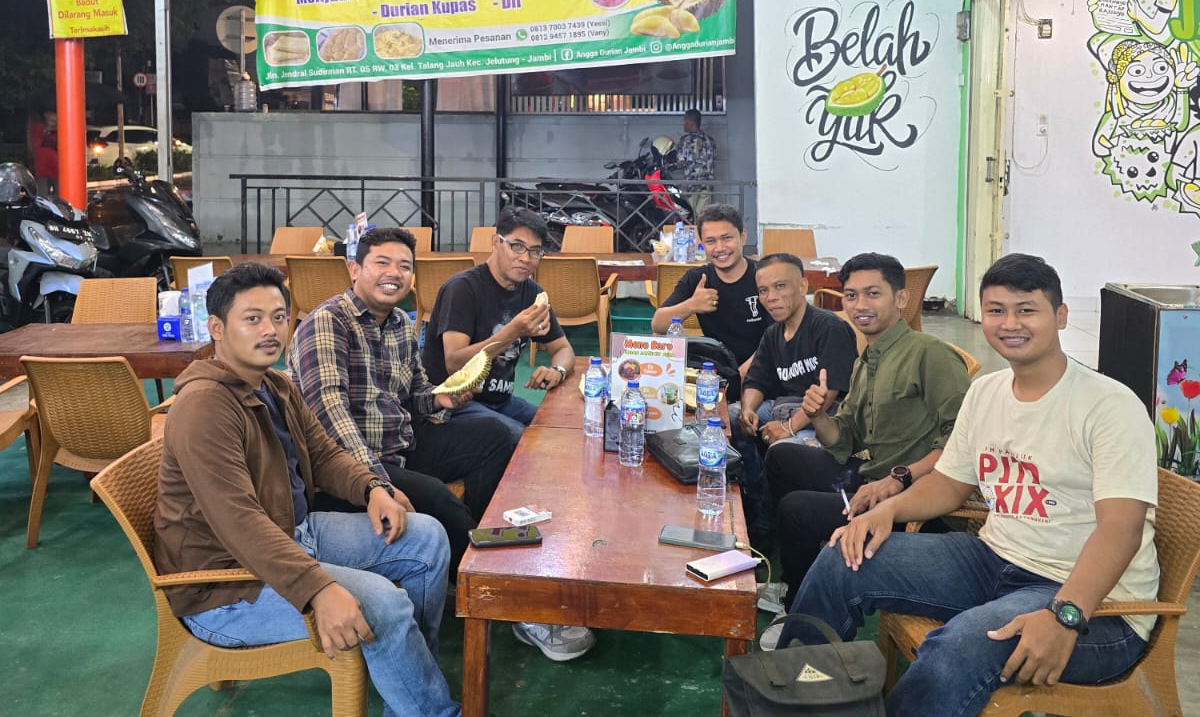 Jambi, 23 Desember 2024 – Dalam suasana penuh kehangatan, Ketua Umum DPP Pemerhati Jurnalis Siber (PJS), Mahmud Marhaba, disambut dengan antusias oleh jajaran anggota PJS Provinsi Jambi. Bertempat di kawasan Jelutung, Kota Jambi, yang dikenal dengan udara segar dan nuansa asrinya, pertemuan ini tidak hanya sekadar silaturahmi, namun juga menjadi ajang menikmati kuliner khas yang tak bisa dilewatkan: Durian Jambi.