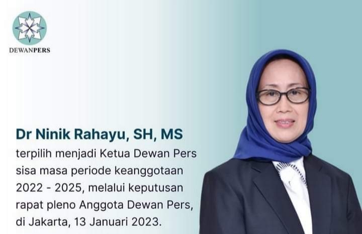 Dr Ninik Rahayu, SH, MS. Pengajar fakultas hukum ini terpilih menjadi Ketua Dewan Pers sisa masa  periode keanggotaan 2022 – 2025, melalui keputusan rapat pleno Anggota Dewan Pers di Jakarta, Jumat (13/1/2022).