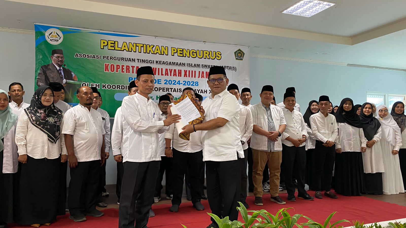 Bertempat di Gedung GTC UIN SUTHA INN, Ketua Koordinator Perguruan Tinggi Swasta (Kopertais) Wilayah XIII Jambi, Prof. Dr. H. As’ad, M.Pd., melantik pengurus baru Asosiasi Perguruan Tinggi Keagamaan Islam Swasta (APTAIS) Periode 2024-2028. Selasa, (27/08).