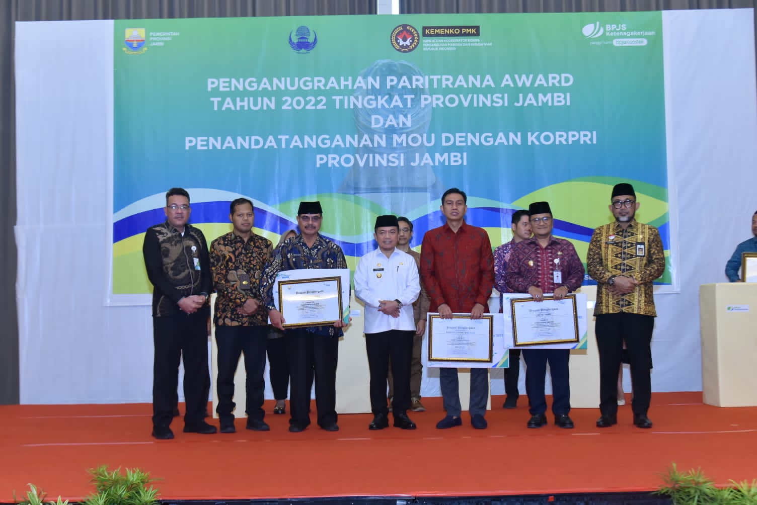 SIGAP91NEWS.COM | JAMBI — BPJS Ketenagakerjaan menyerahkan penghargaan Paritrana Award Tahun 2022 tingkat Provinsi Jambi. Penganugerahan ini diberikan kepada badan usaha serta pemerintah daerah yang memiliki kepedulian terhadap perlindungan pekerja.