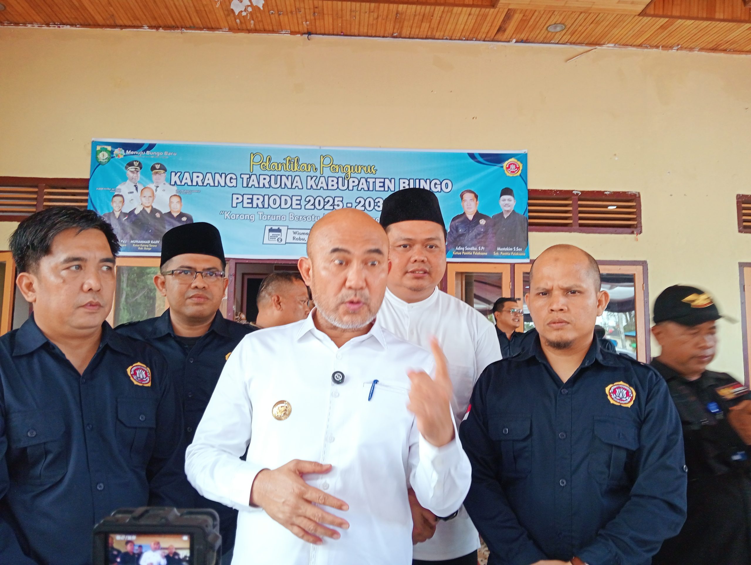 BUNGO – Muhammad Rajiv resmi dilantik sebagai Ketua Karang Taruna Kabupaten Bungo bersama jajaran pengurus baru, Rabu (11/2), di Wisma Ali Sudin, Rumah Dinas Bupati Bungo.