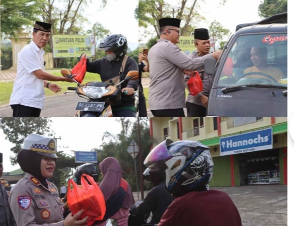 Dalam kegiatan itu, personel Polres OKU membagikan paket takjil berisi makanan dan minuman untuk berbuka puasa kepada para pengendara sepeda motor maupun mobil yang masih berada di perjalanan menjelang azan Magrib.