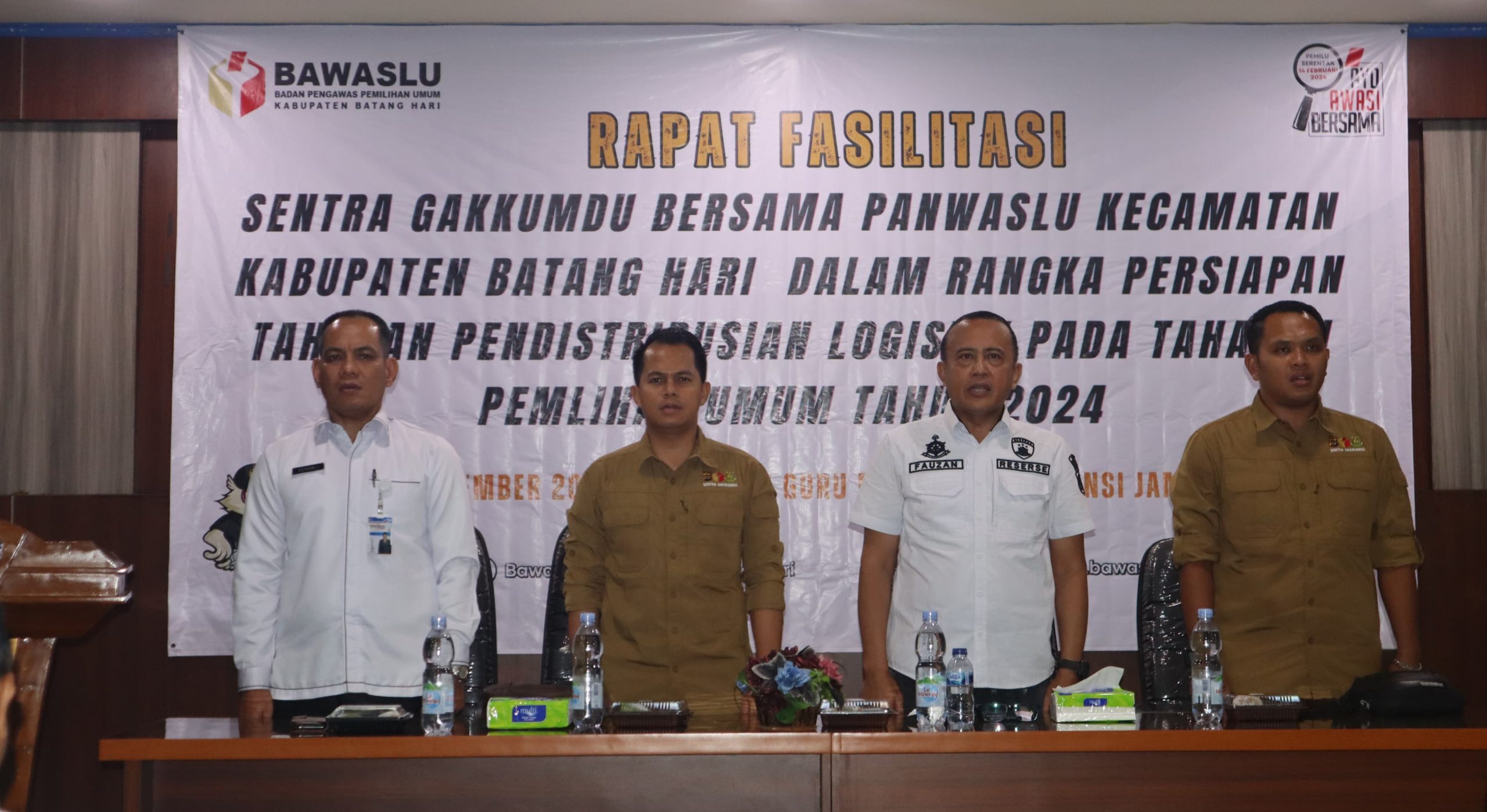 Bawaslu Kabupaten Batanghari menggelar Rapat Koordinasi dengan Stakeholder terkait Penurunan Alat Peraga Kampanye (APK) ditempat yang melanggar berdasarkan SK KPU 195 tahun 2023 tentang Perubahan Keputusan KPU Batanghari Nomor 192 Tahun 2023 Tentang Penetapan Lokasi Pemasangan APK Pemilu Tahun 2024 di Kabupaten Batanghari.