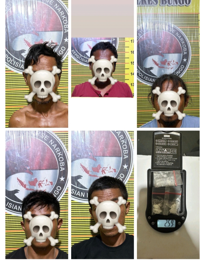 BUNGO – Komitmen memberantas peredaran narkotika terus ditunjukkan Satuan Reserse Narkoba Polres Bungo. Kali ini, aparat berhasil mengungkap kasus penyalahgunaan narkoba jenis sabu dan mengamankan lima pria di kawasan Danau Buluh, Kelurahan Jaya Setia, Kecamatan Pasar Muara Bungo.